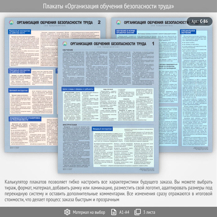 Плакаты «Организация обучения безопасности труда» (С-86, 3 листа) в Екатеринбурге купить
